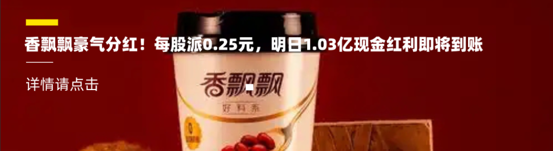 香飘飘豪气分红!每股派0.25元,明日1.03亿现金红利即将到账丨AI读浙股